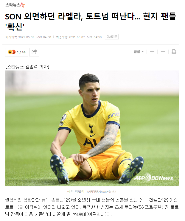 ['무리뉴 따라가는 라멜라?' 현지 언론 예상]