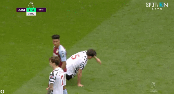 경합중 발목쪽 충격으로 결국 부상아웃 되고 마는 매과이어...