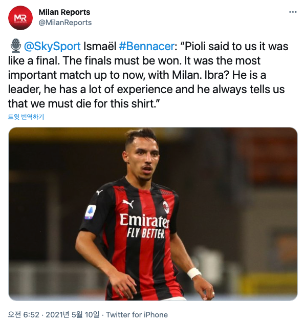 "이브라? 그는 리더입니다. 그는 경험이 많고 항상 이 셔츠를 위해 죽자고 말합니다."
