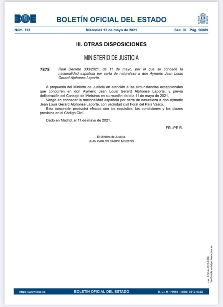 [[오피셜] 라포르트, 스페인으로 국적 변경]