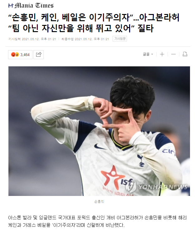 | "이기주의자" 손흥민을 비판한 잉글랜드 전 국가대표 | |