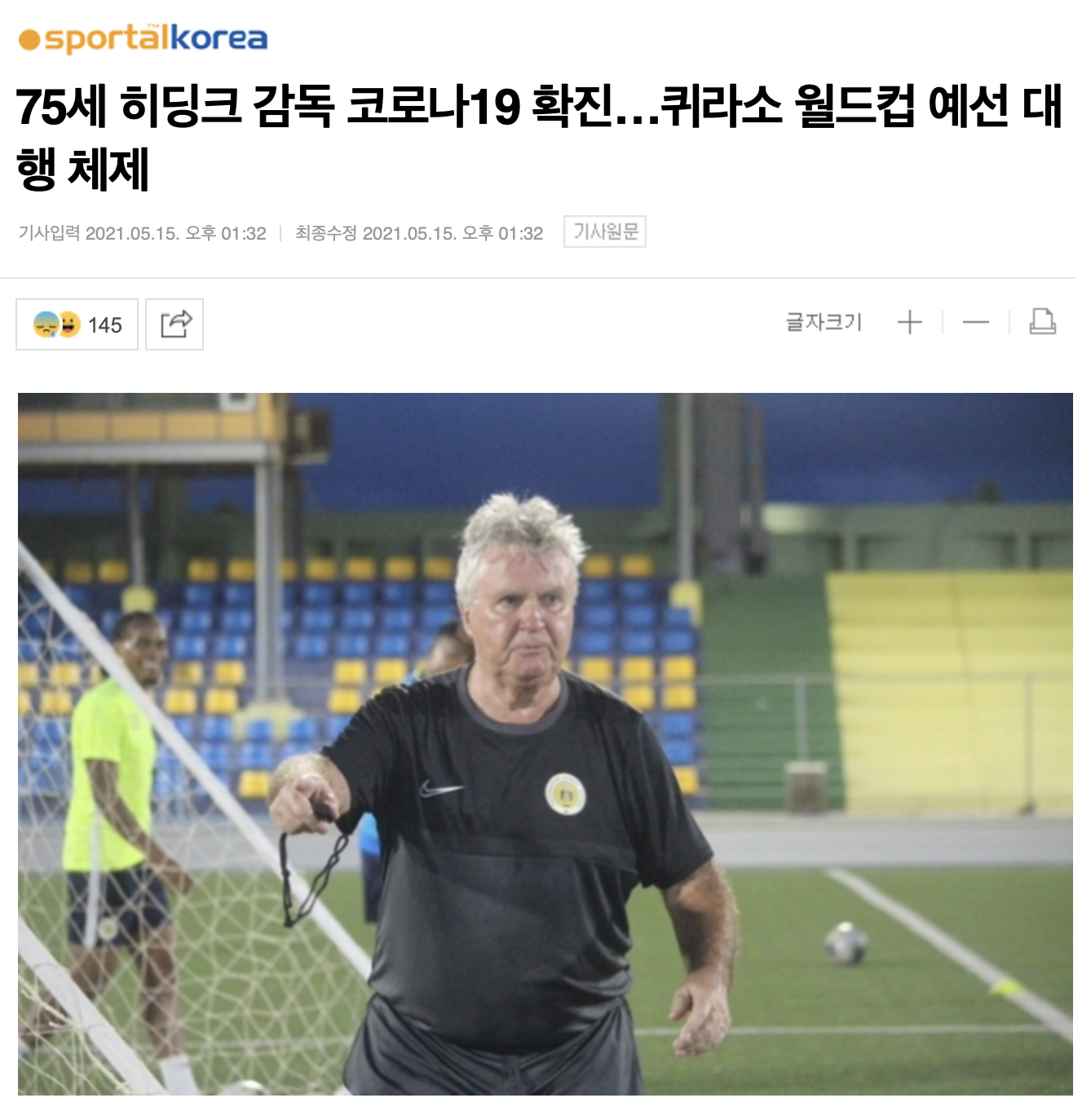 75세, 히딩크 감독 코로나 19 확진