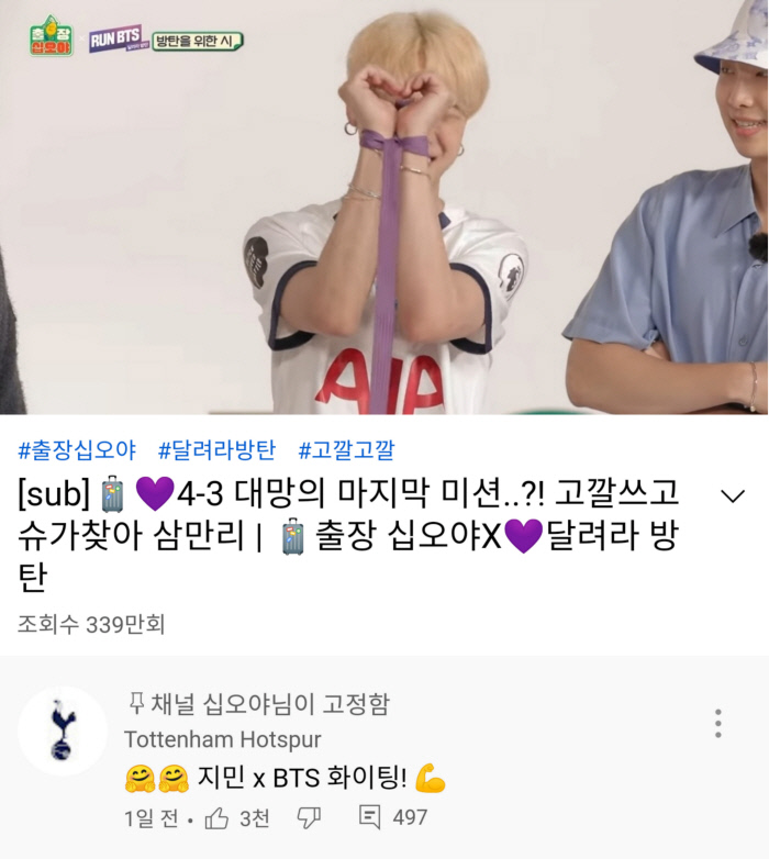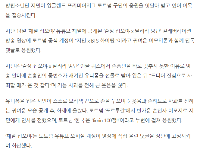 ['진짜가 등장' BTSx지민 영상에 응원 댓글단 토트넘]