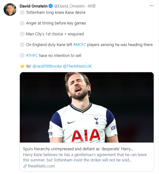 •토트넘은 전부터 케인의 바램을 알고있었다.