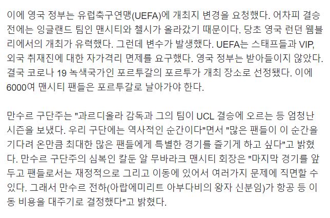 [결승 진출 맨시티 팬들을 위한 구단주 만수르 플렉스]