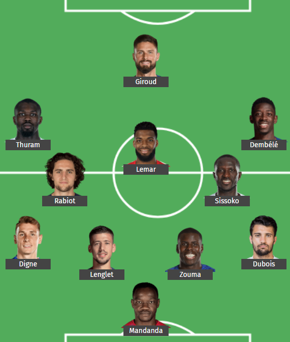 미드필더 : Kanté, Pogba, Rabiot, Tolisso, Sissoko