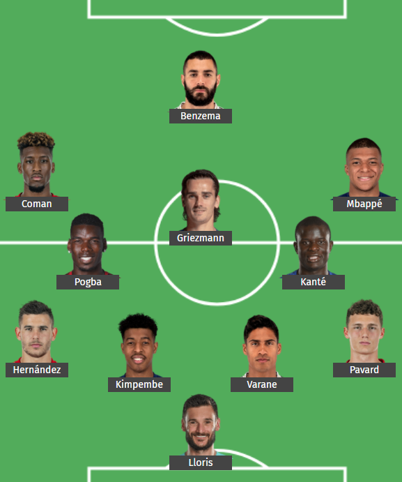 수비: Dubois, Pavard, Zouma, Koundé, Varane, Lenglet, Kimpembe, Digne, L.Hernandez