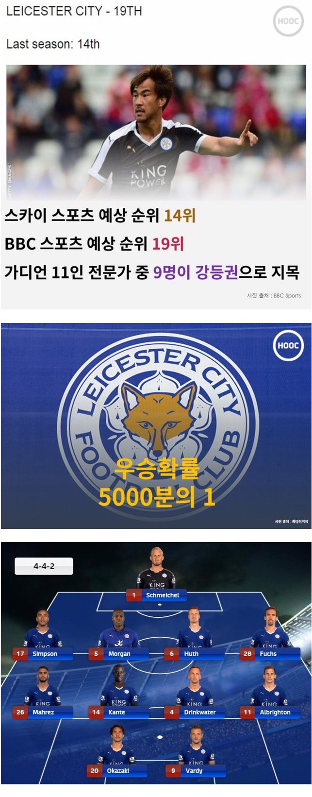 영화로 만들어도 말도 안된다는 소리를 들을 레스터 시티의 프리미어리그 우승