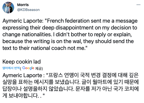 [귀화 후 프랑스 축협한테 문자 받은 '라포르테']
