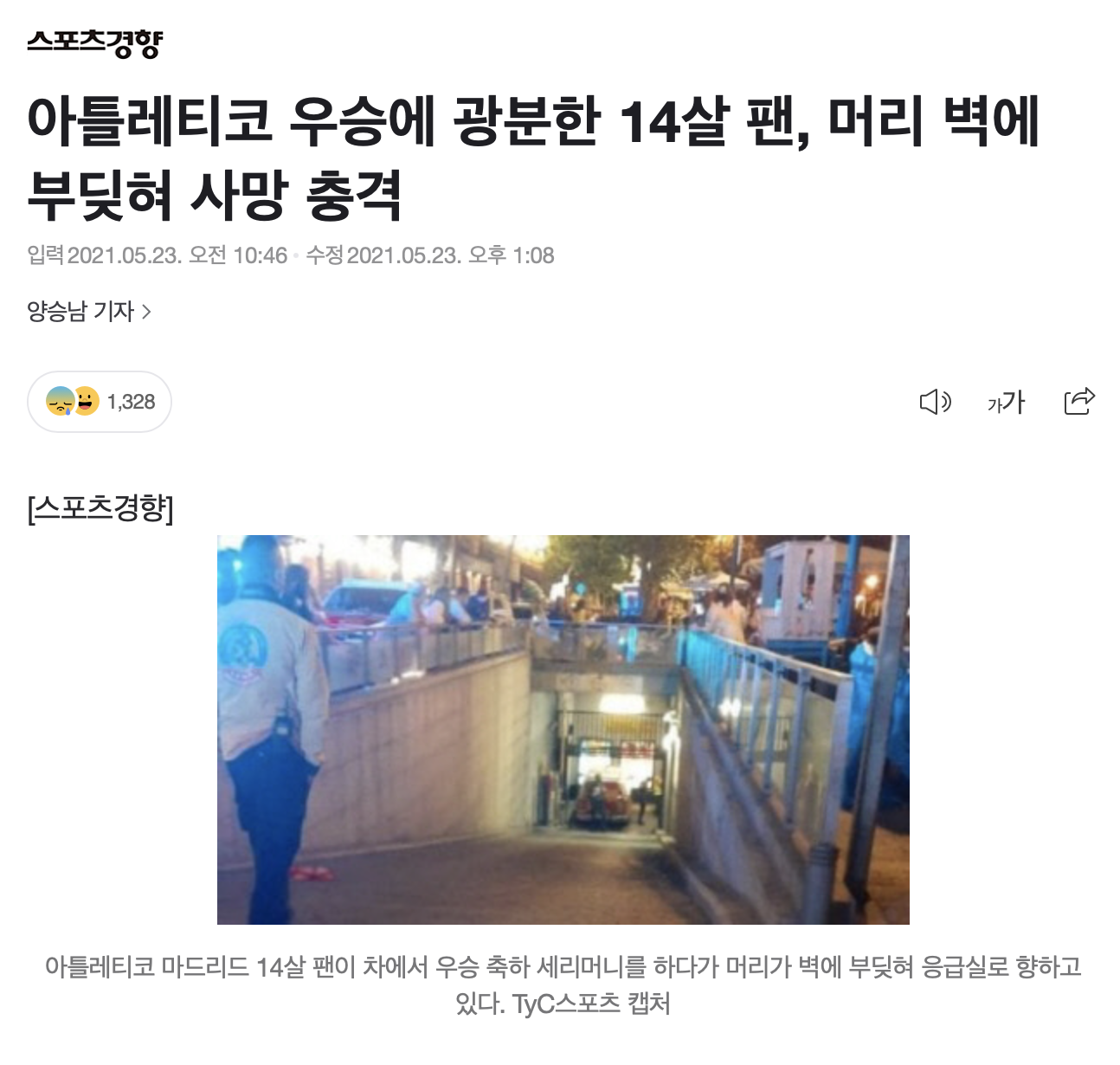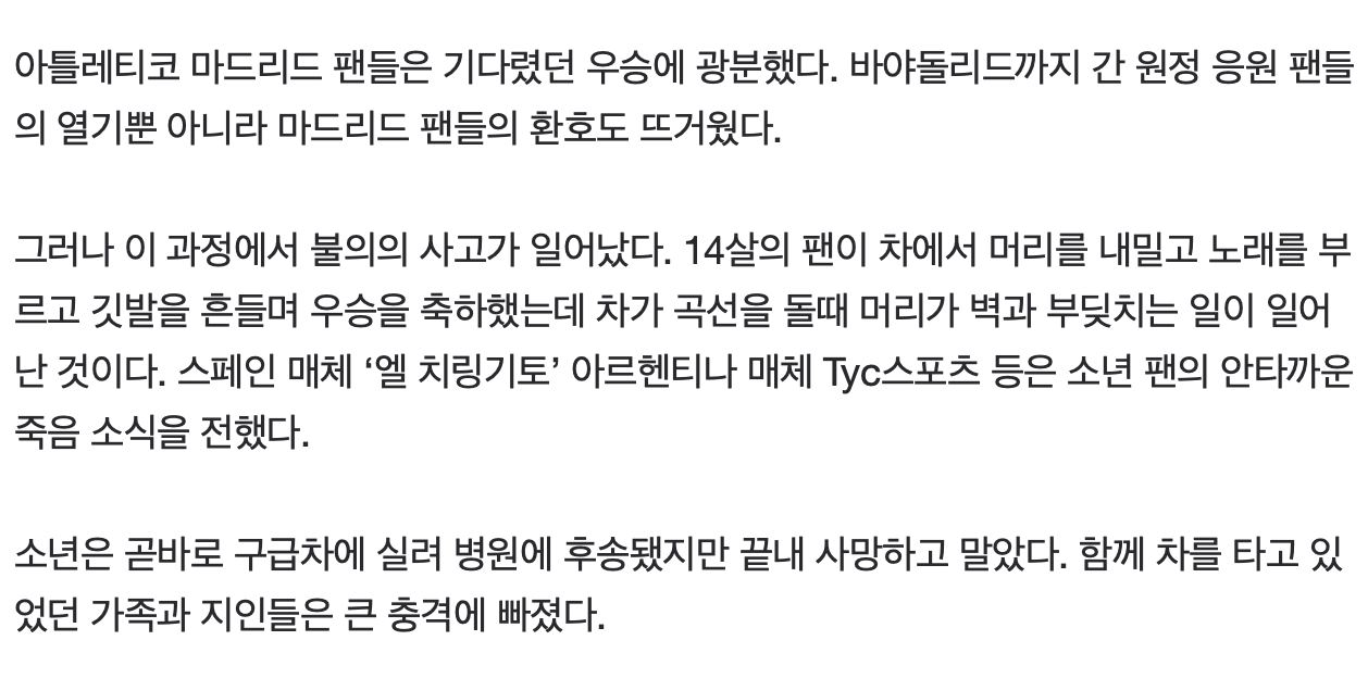 AT 마드리드 14살 팬, 우승 축하하다 사고로 사망