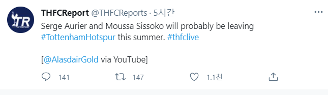 출처 : https://twitter.com/THFCReports/status/1397263984420663301