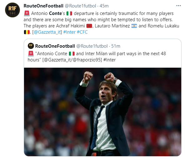 콘테의 이적은 많은 선수들이 큰 충격이 될것이며 하키미, 라우타로, 루카쿠는 여러 제안에 흔들릴수 있다.