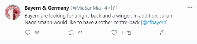 바이에른 뮌헨은 라이트백과 윙어를 찾는중. 나겔스만은 센터백도 한명 더 사주길 원함