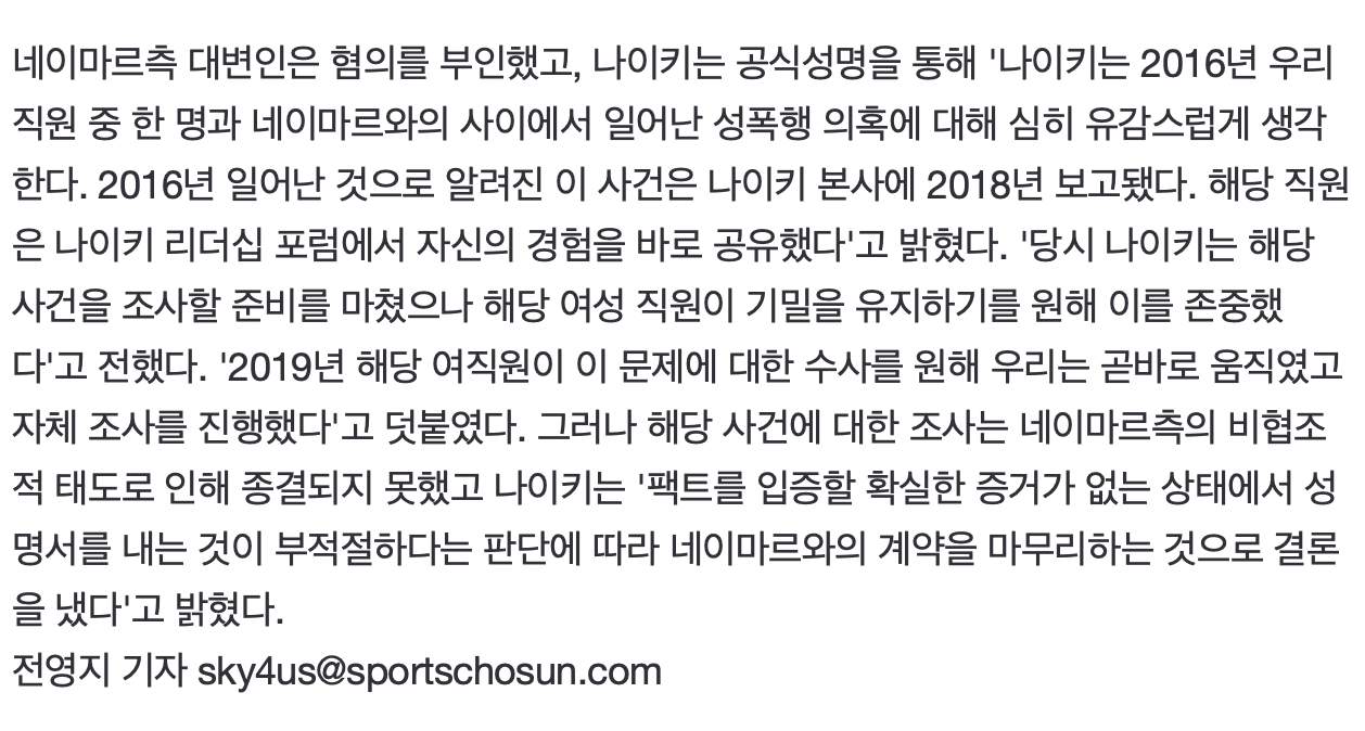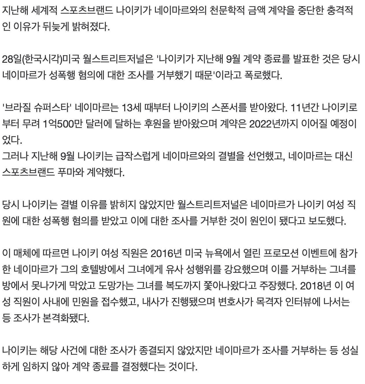 | 여직원 성폭행 관련.. 충격적인 '나이키-네이마르' 계약 종료 이유 | |