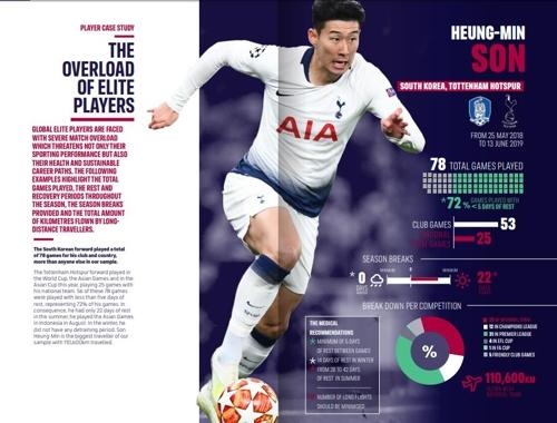 선수협회는 "손흥민이 소화한 78경기 가운데 72%의 경기가 닷새 휴식 미만이었다"라며 "경기 사이에는 최소 닷새는 쉬어야 한다. 더불어 겨울에는 14일 이상 휴식해야 하고, 여름에는 28~42일의 휴식이 필요하다"고 권고했다.