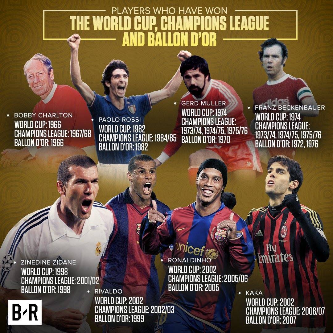 바비 찰튼, 파올로 로시, 게르트 뮐러, 프란츠 베켄바우어, 지네디 지단, 히바우두, 호나우지뉴, 카카