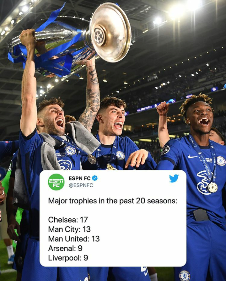 지난 20시즌 가장 많은 메이저 트로피를 들어올린 PL 클럽