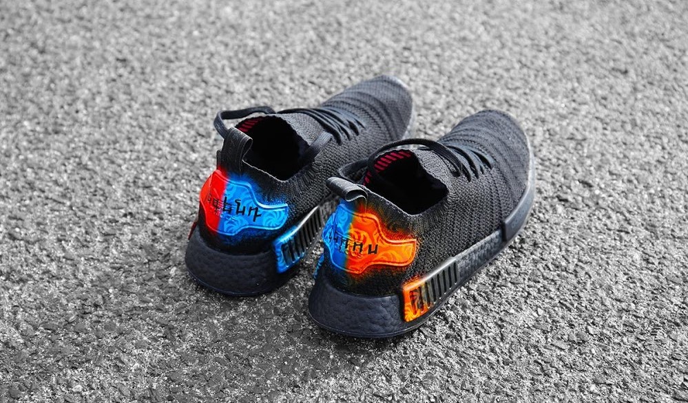또 다른 하나는 양쪽에 ‘HERO’와 ‘LEGEND’가 쓰인 검은색 아디다스의 NMD R1입니다.