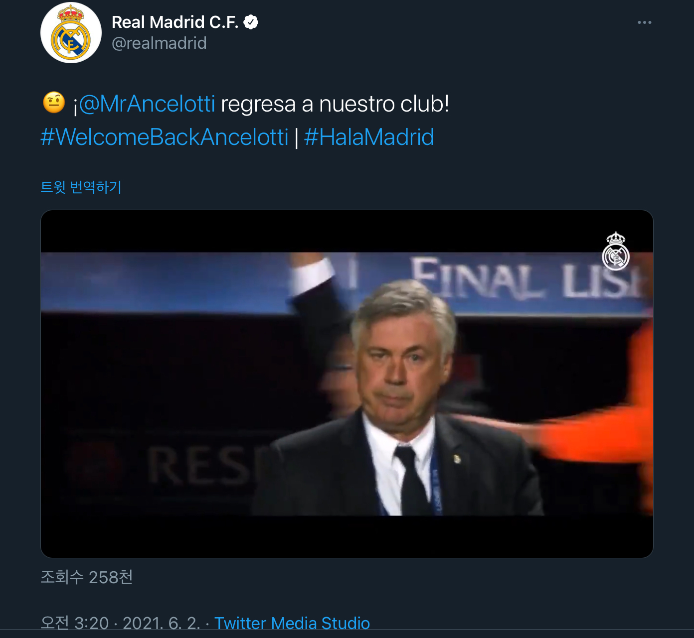 출처 : https://www.realmadrid.com/noticias/2021/06/01/comunicado-oficial-ancelotti?utm_source=twitter&utm_medium=social&utm_campaign=organico