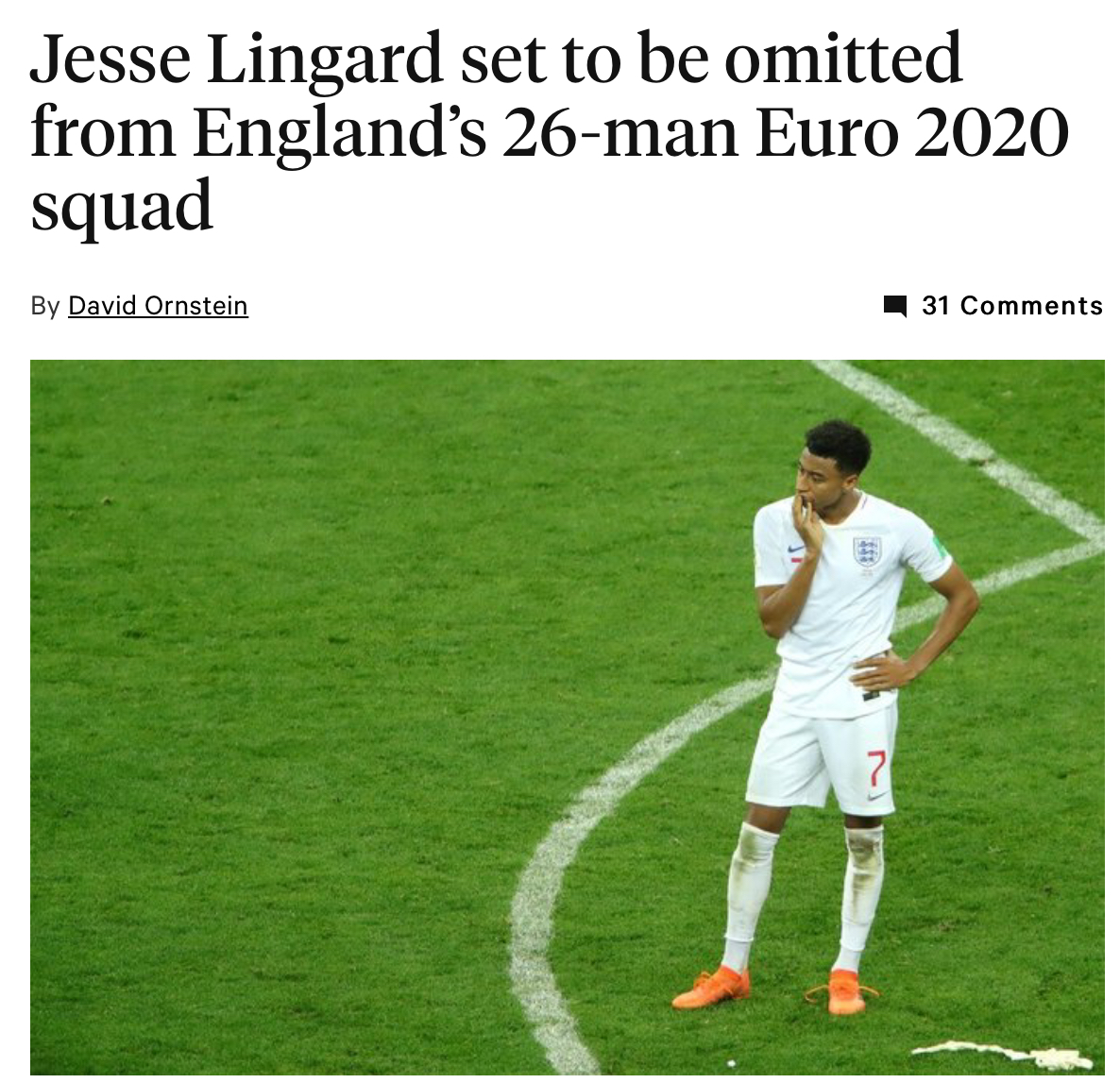 제시 린가드, 유로 2020 잉글랜드 국대에서 최종 탈락