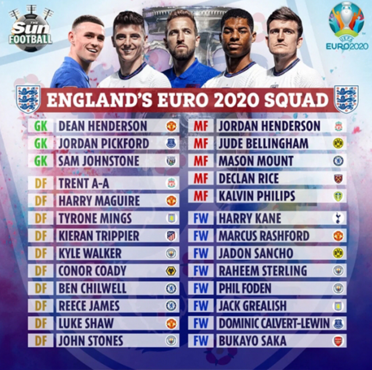 린가드는 웨스트햄에서 인상적인 시즌을 보냈지만 유로 2020 대표팀에서 최종 탈락했다. 아래는 잉글랜드 최종 명단