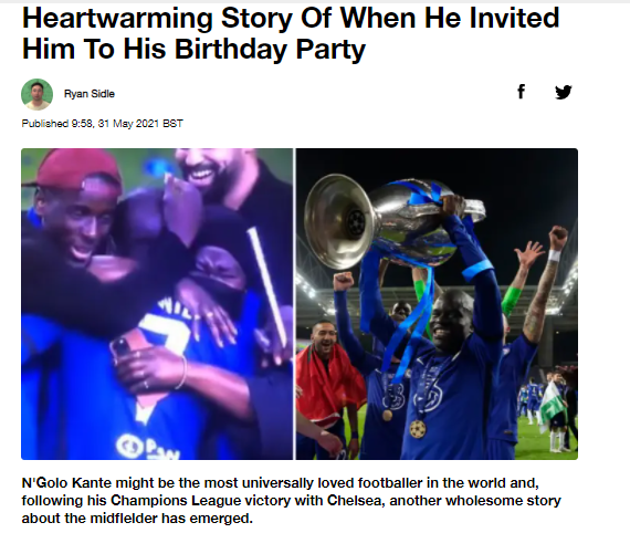 "저는 캉테를 제 생일파티에 초대했습니다. 작은 파티였죠."