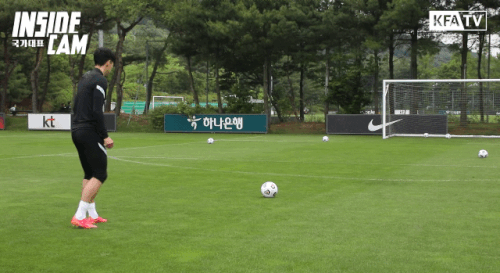 손흥민 살벌한 무회전 프리킥 훈련ㄷㄷ.gif