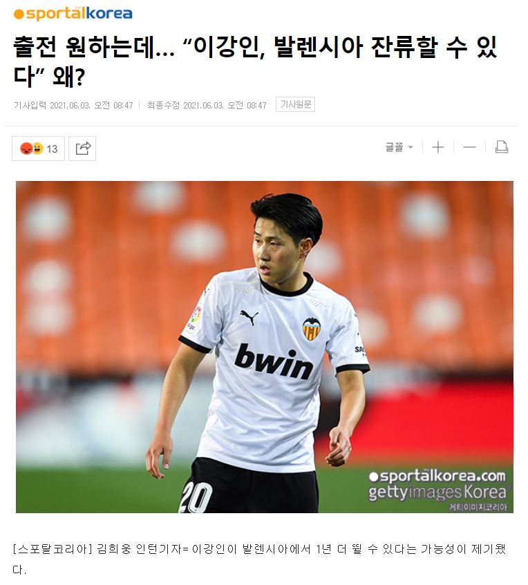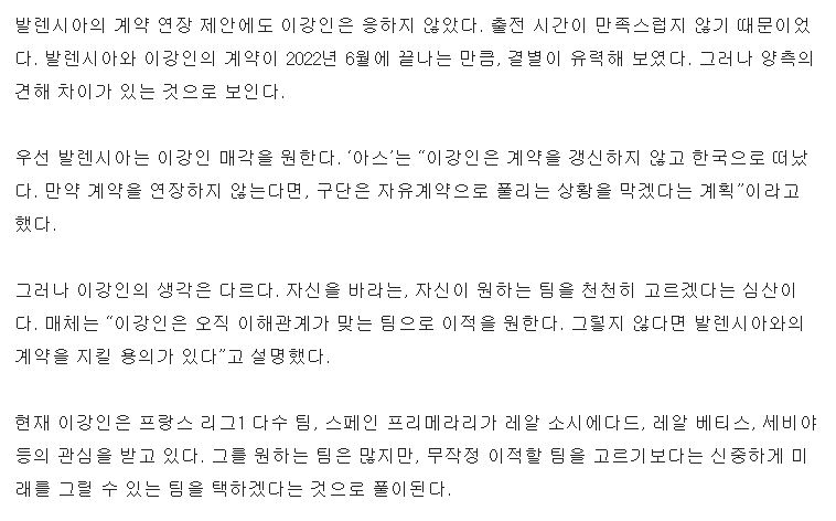[출천 원하는 이강인, 발렌시아 잔류할 수 있다]