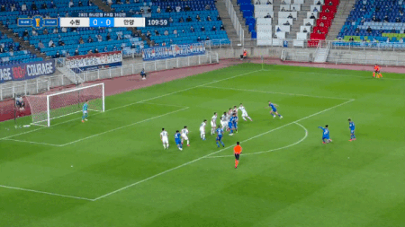 국대 막내 정상빈의 미친 프리킥ㄷㄷㄷㄷ.gif
