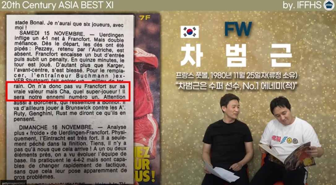 본문 설명에 차범근은 슈퍼 선수, 넘버원 에네미. 가슴이 웅장해지네요.