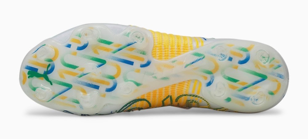 인솔과 아웃 솔에는 네이마르의 푸마 시그니처 로고 패턴이 디자인되어 있는데요. 로고의 폰트는 상파울루 거리에서 발견되는 pichação (그래피티)에서 영감을 얻었다고 합니다.