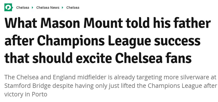 (기사 전문: https://www.football.london/chelsea-fc/news/mason-mount-excite-chelsea-fans-20732870 )