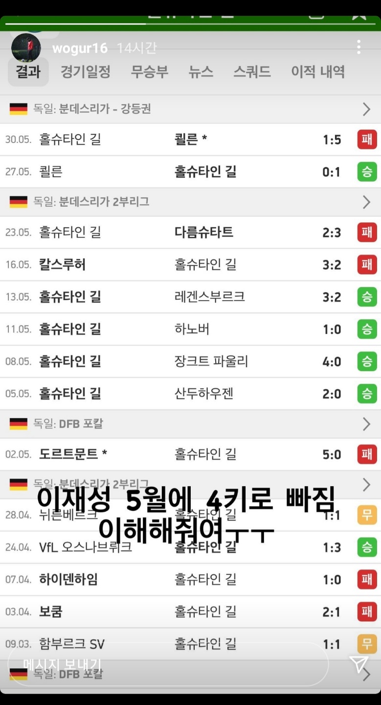 "이재성 5월에 4키로 빠짐, 이해해줘여ㅜㅜ"