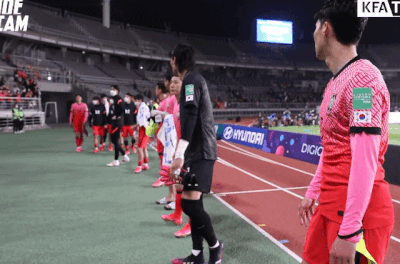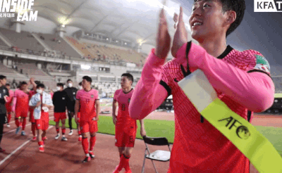 [선수들 모아서 팬에게 인사하는 손흥민.gif]