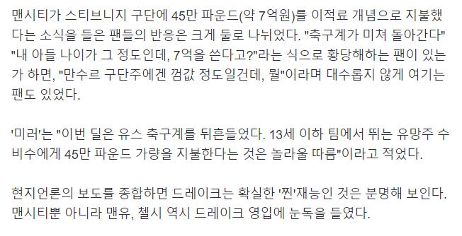 [맨시티가 13세 유망주를 영입하기위해 지불한 금액ㄷㄷ]