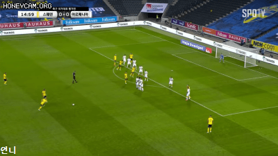 오늘자 황희찬 동료 '포르스베리'의 미친 프리킥ㄷㄷ.gif