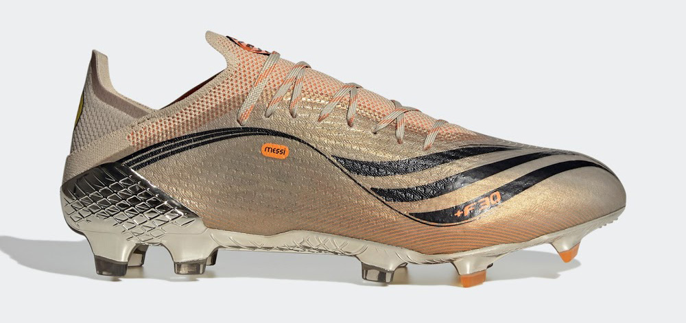 축구화가 골드 컬러로 제작된 것은 2007년 코파 델 레이 경기에서 나온 장면에서 영감을 받은 것입니다. 어린 나이였던 메시는 헤타페 선수들을 무려 하프라인부터 제치고 들어가 득점을 만들어냈죠. 그 당시 메시가 신었던 축구화의 색상입니다.