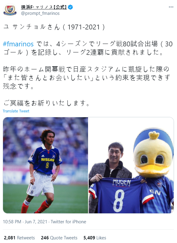 [유상철 감독님을 추모하는 일본 요코하마 F. 마리노스.jpg]