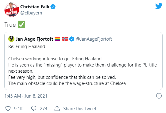그리고 Jan Aage Fjortoft의 트윗이 트루라고 리트윗 한 크리스티안 폴크