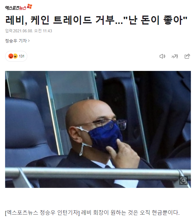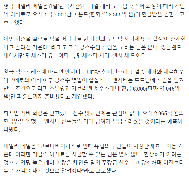 | 케인 트레이드 거부하는 레비 "오직 현금만" | |