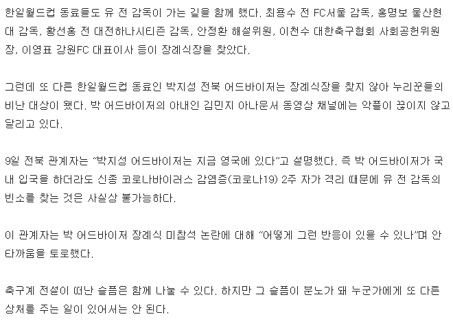 | "박지성은 유상철 조문 안 가냐?" 황당한 비난 받았던 박지성 | |