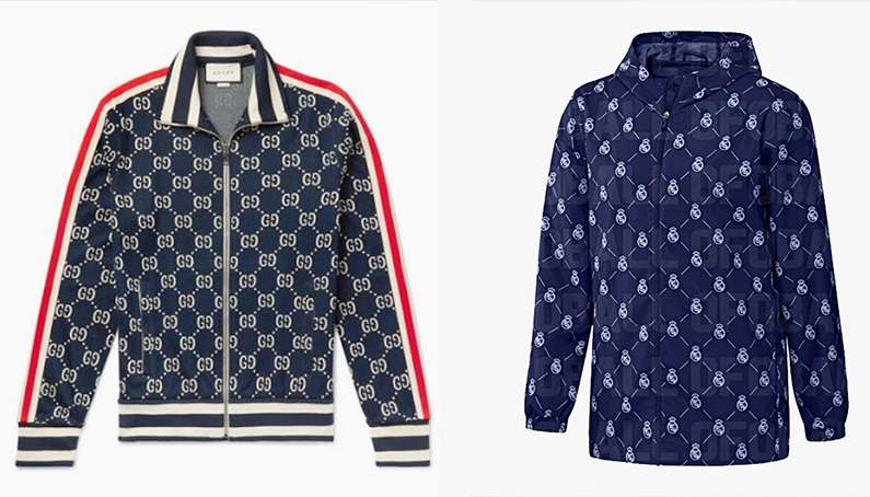 바로 스페인 레알마드리드의 22/23 시즌 '오프 피치' 컬렉션의 자켓사진인데요. 마치 이탈리아 명품 패션 브랜드 '구찌'의 로고 패턴을 사용한 디자인을 연상하게 해서 '구찌'와의 콜라보가 아닌가 하는 루머가 있었습니다.