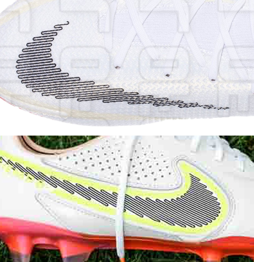 유출된 티엠포 레전드 9와 팬텀 GT 2의 가장 큰 특징은 미래를 지향하는 듯, 축구화의 스우시를 일정한 간격의 선들로 채워 넣었다는 점입니다. 멀리서 봤을때는 일반 검은색의 스우시로 보이지만 가까이서 보면 낙서같아 보이기도 하지만 디지털숫자들을 나열해 놓은듯한 이미지를 연상하게 합니다.