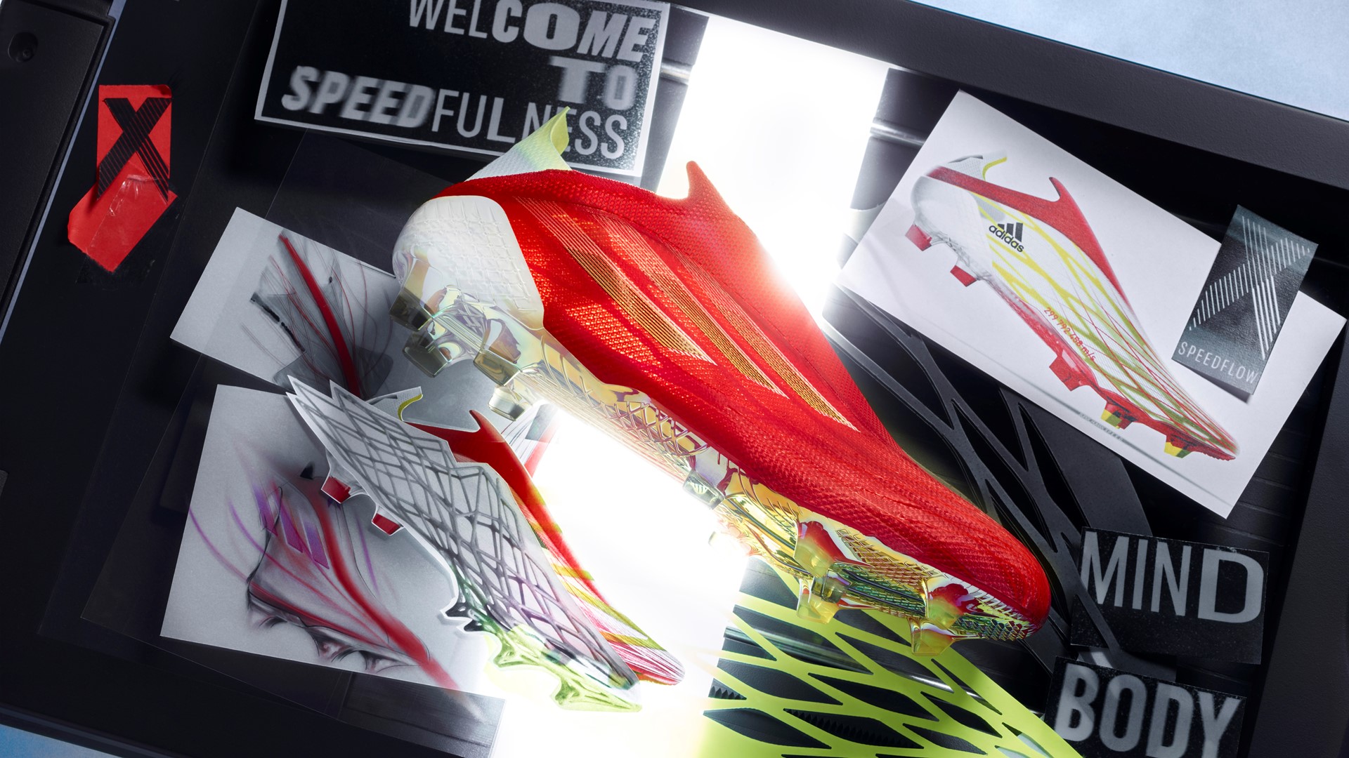 가장 의미 있는 점은, 이번 엑스 스피드플로우를 개발하며 ‘스피드’가 신체적 관점뿐 아니라 심리적 관점에서 축구 경기에 어떠한 영향을 미치는지를 고려하였다는 것이다. 아디다스는 선수들이 완벽히 경기에 집중하여 빠른 판단력과 보다 쉽게 스피드를 끌어 올릴 수 있는 상태를 일컬어 ‘스피드풀니스(SPEEDFULNESS)’라는 새로운 용어를 탄생시켰다. 엑스 스피드플로우는 선수들이 경기에 완전히 몰입하여 상상보다 빠른 스피드의 신세계를 경험할 수 있게 해준다.