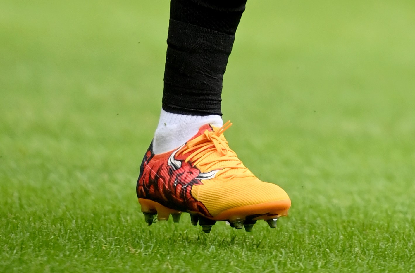아다마 트라오레가 최신작인 머큐리얼 베이퍼 14를 신지 않고 전작인 머큐리얼 베이퍼 13을 신은 것도 궁금한 부분인데요. 정확한 이유는 알지 못하지만 노란색의 머큐리얼 베이퍼 13과 황소 디자인은 잘 어울리는 것 같습니다.