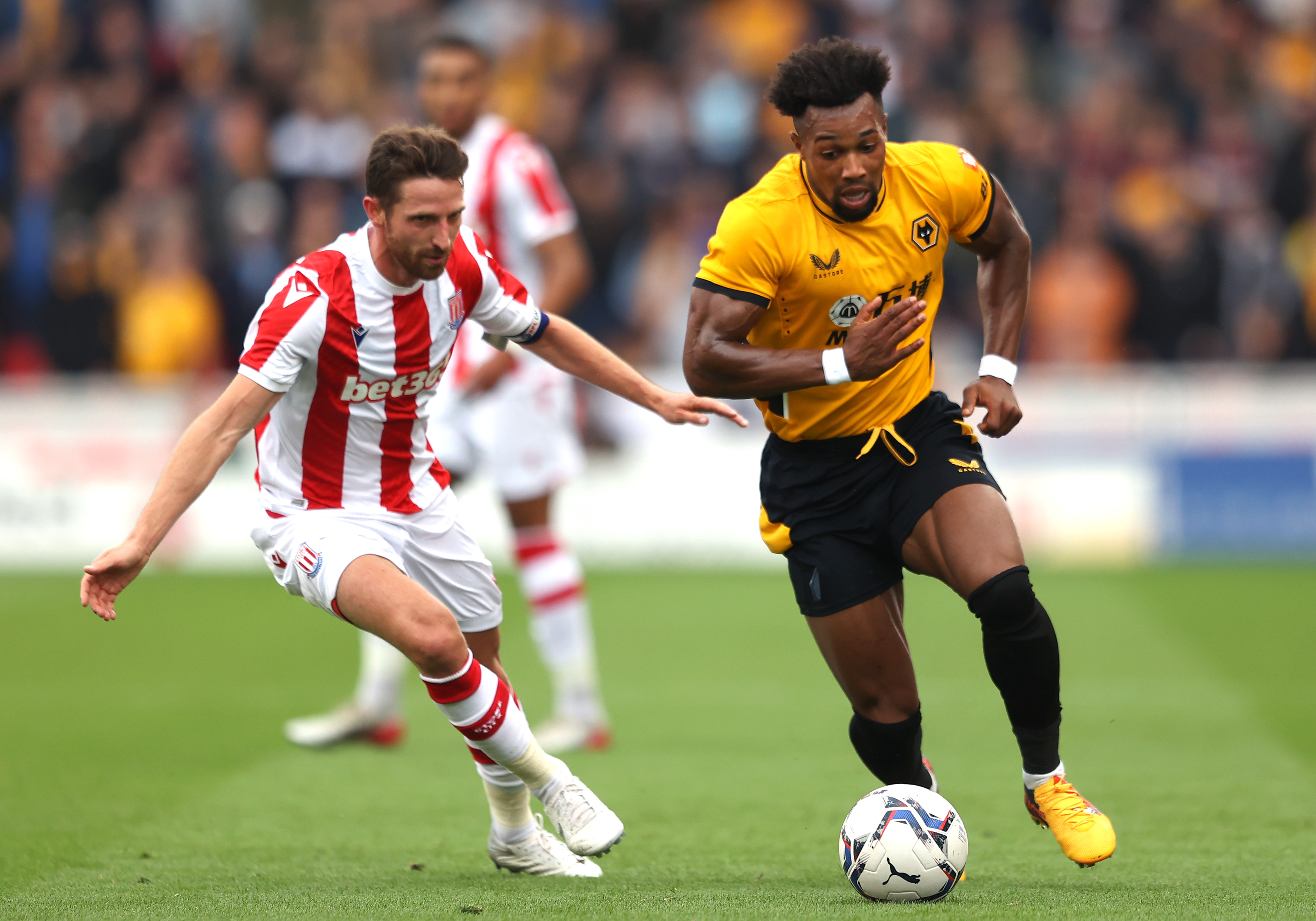 울버햄튼의 황소 같은 윙어, 아다마 트라오레가 프리시즌 경기인 스토크 시티와 코번트리 시티와의 경기에서 '특별한 축구화'를 착용한 모습이 포착됐습니다.