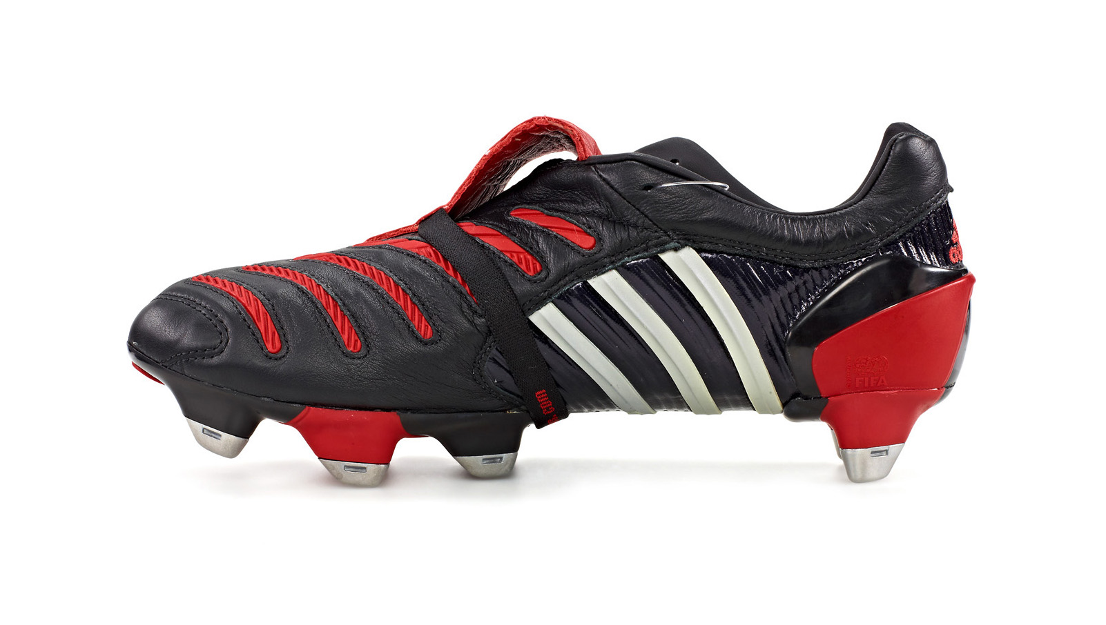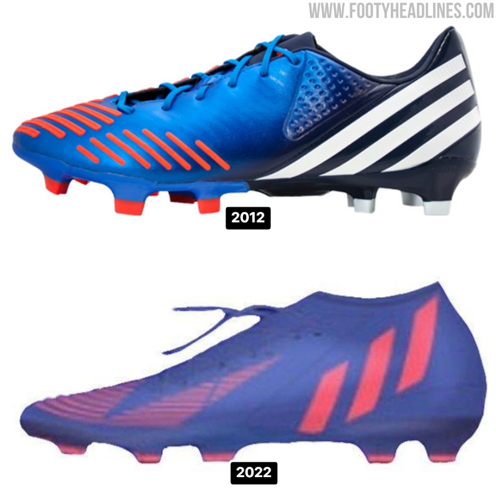 아디다스의 삼선은 축구화 뒷부분에 수직으로 위치합니다. 이 축구화를 보면 2012년에 출시된 '프레데터 LZ'가 떠오릅니다.