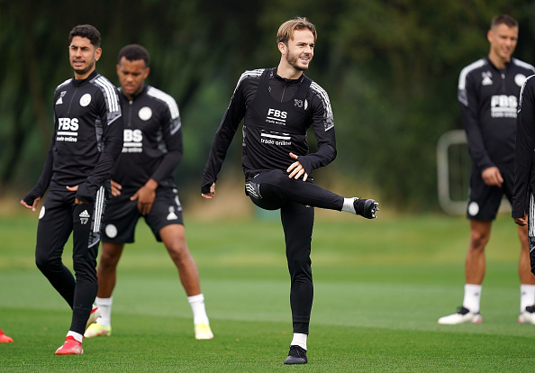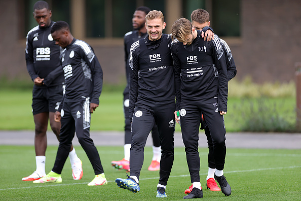 레스터 시티의 미드필더 '제임스 메디슨'이 훈련장에서 흥미로운 블랙아웃 축구화를 신었습니다.