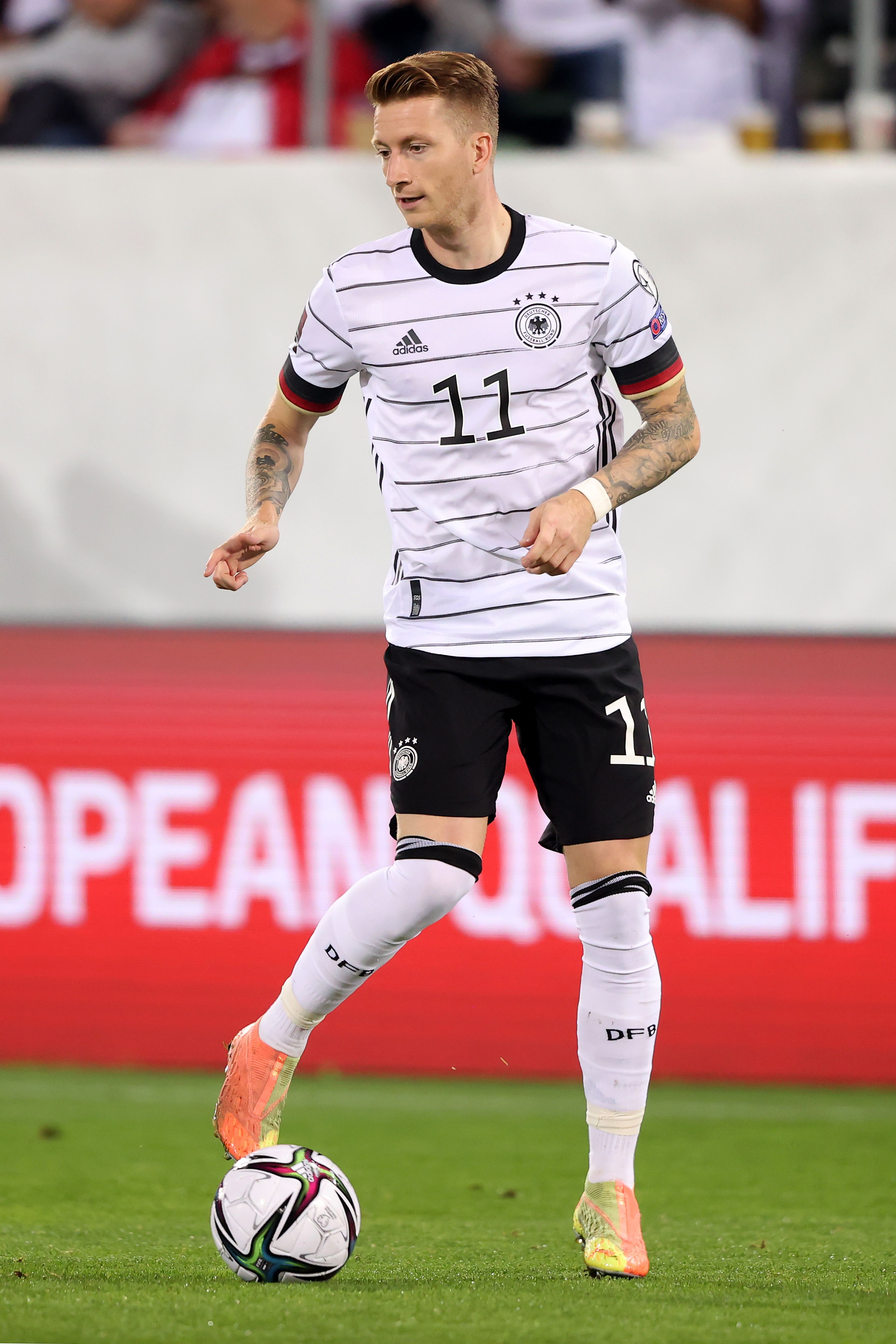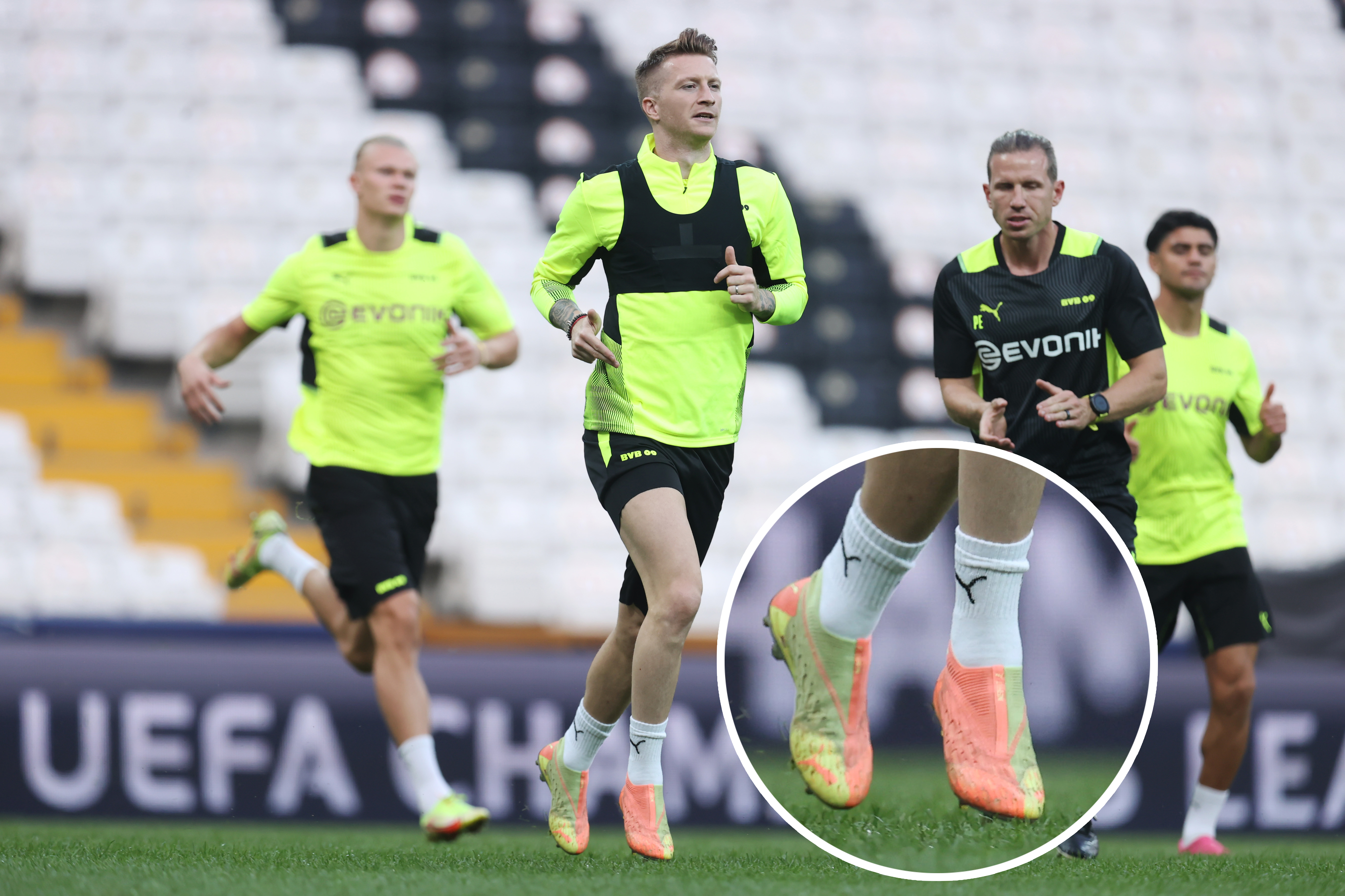 마르코 로이스는 축구화에 끈을 사용하지 않은 모습도 보입니다.