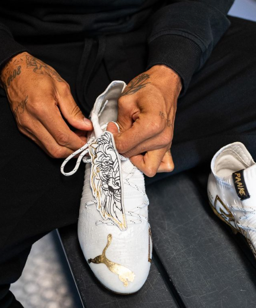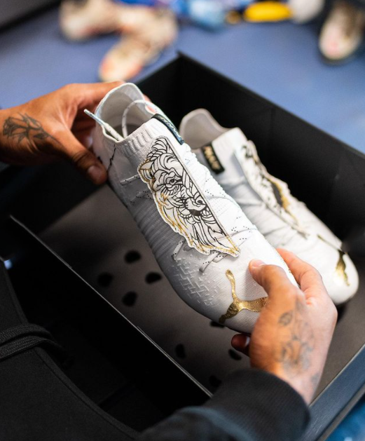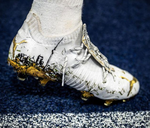케빈 프린스 보아텡의 다리에 있는 사자 타투를 축구화 끈 위에 포인트로 사용한 모습이 특징이고 White & Gold 컬러를 사용해서 굉장히 고급스러운 느낌입니다.
